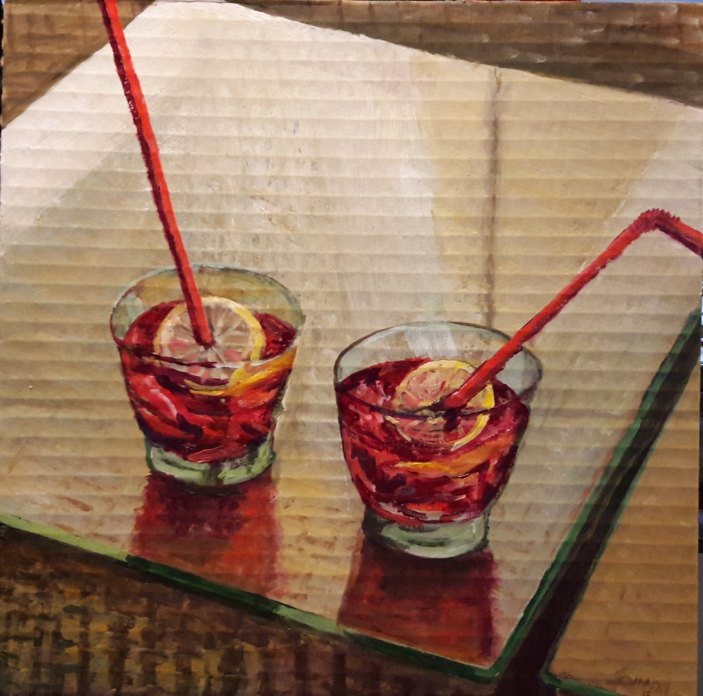 Previous Image Next Image 20181218_081515 Campari Per Due Sold 2/10/19 12×12″, acrylics on cardboard, 2018